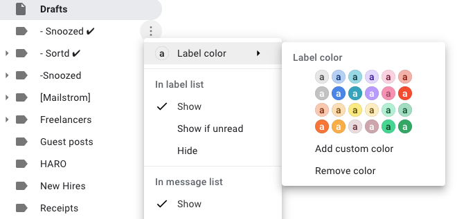 How to Create Folders in Gmail: An ultimate guide [2022] - Setapp Here's how to delete a label in Gmail: Open Gmail in a browser; Go to the sidebar and hover over a label ; Click the three dots > Remove label. How to manage your Gmail labels . Now when we know how to create, edit, and delete labels, let's see how to use them. When you scroll down in the Gmail menu, you'll see a Manage labels option.